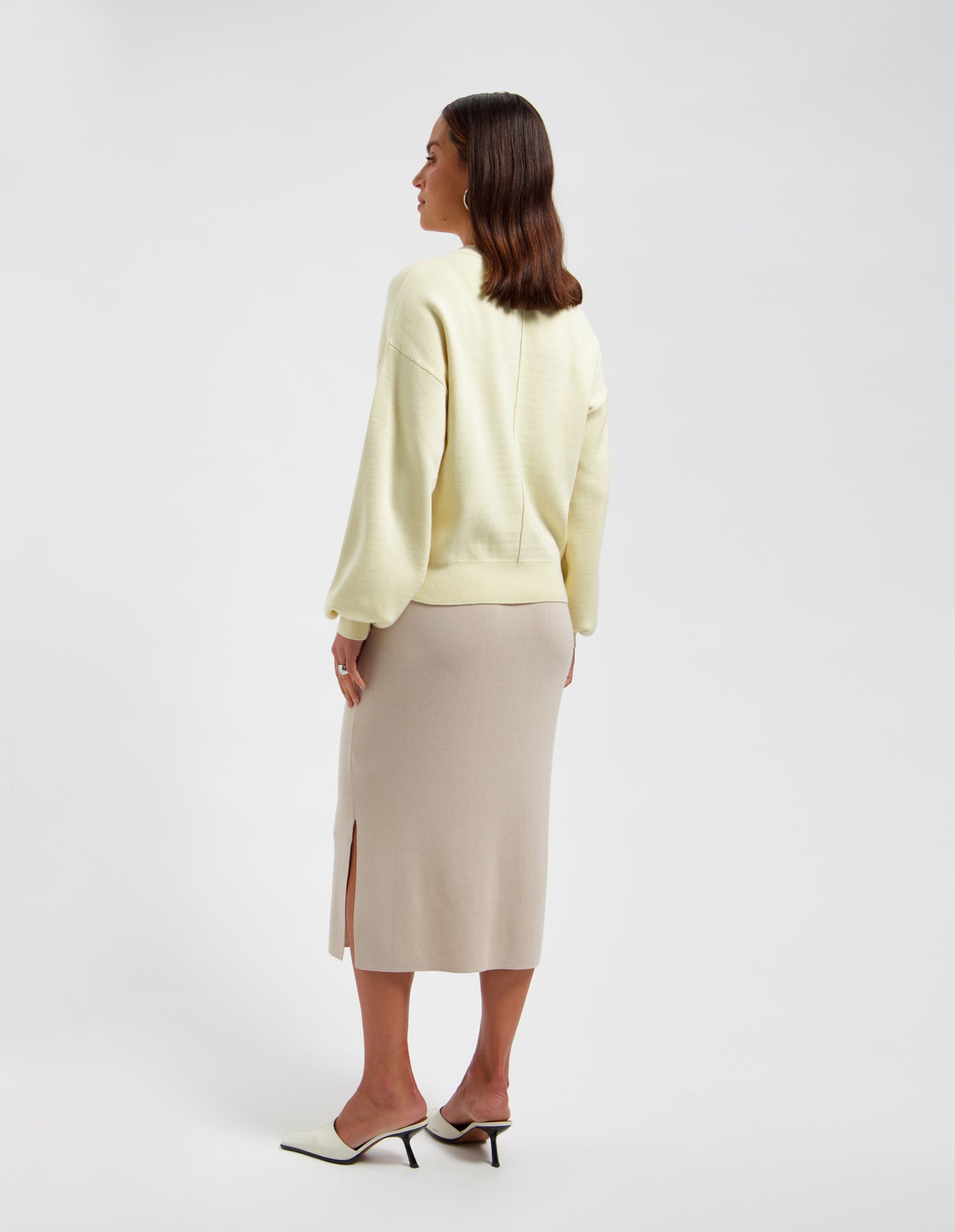 The Ket sweater is a modern knit essential with a relaxed silhouette and softly sculpted puff sleeves. Crafted from a lightweight cotton blend, it offers breathable comfort while maintaining its shape. The clean neckline and understated finish create an effortless, elevated look for everyday wear.