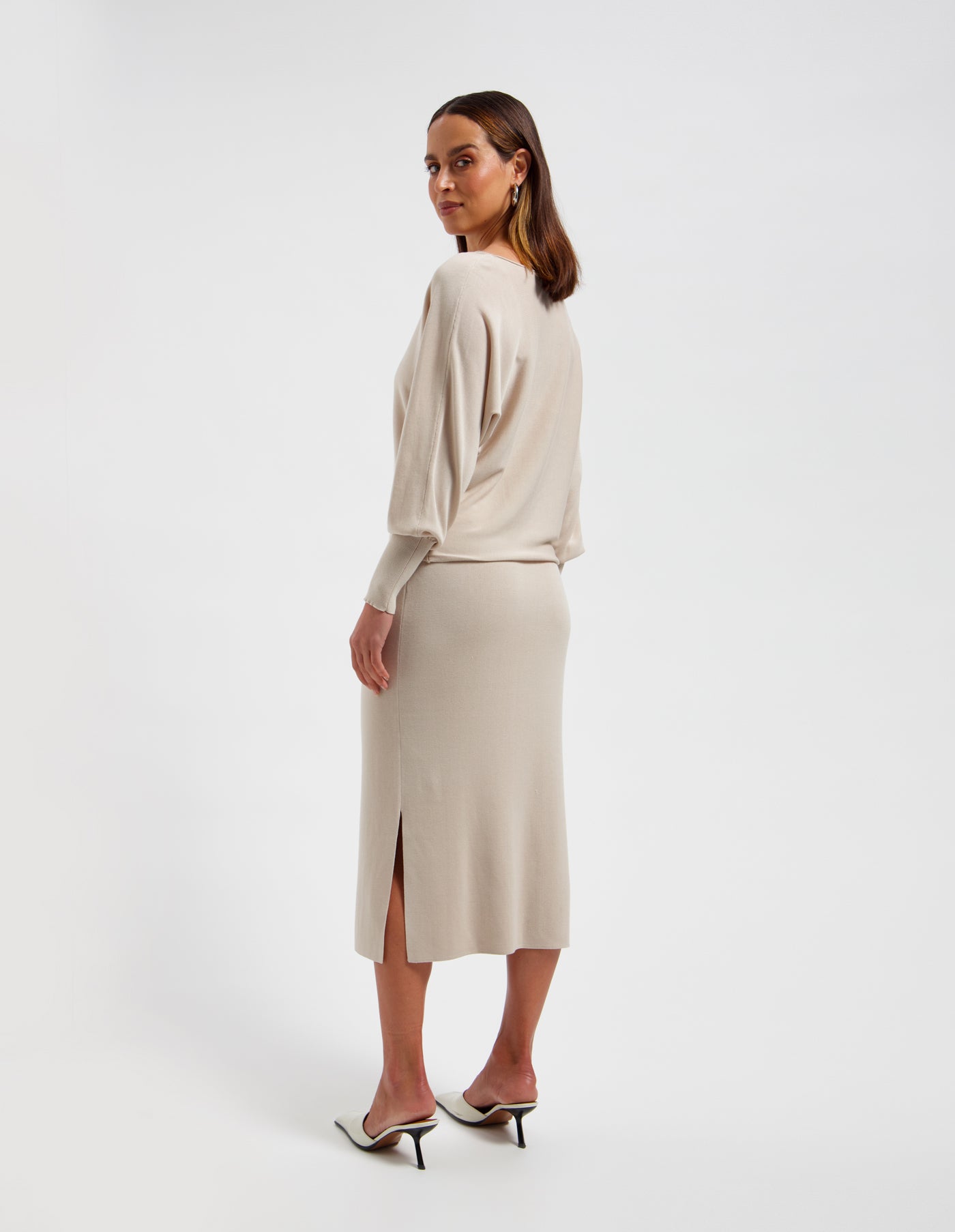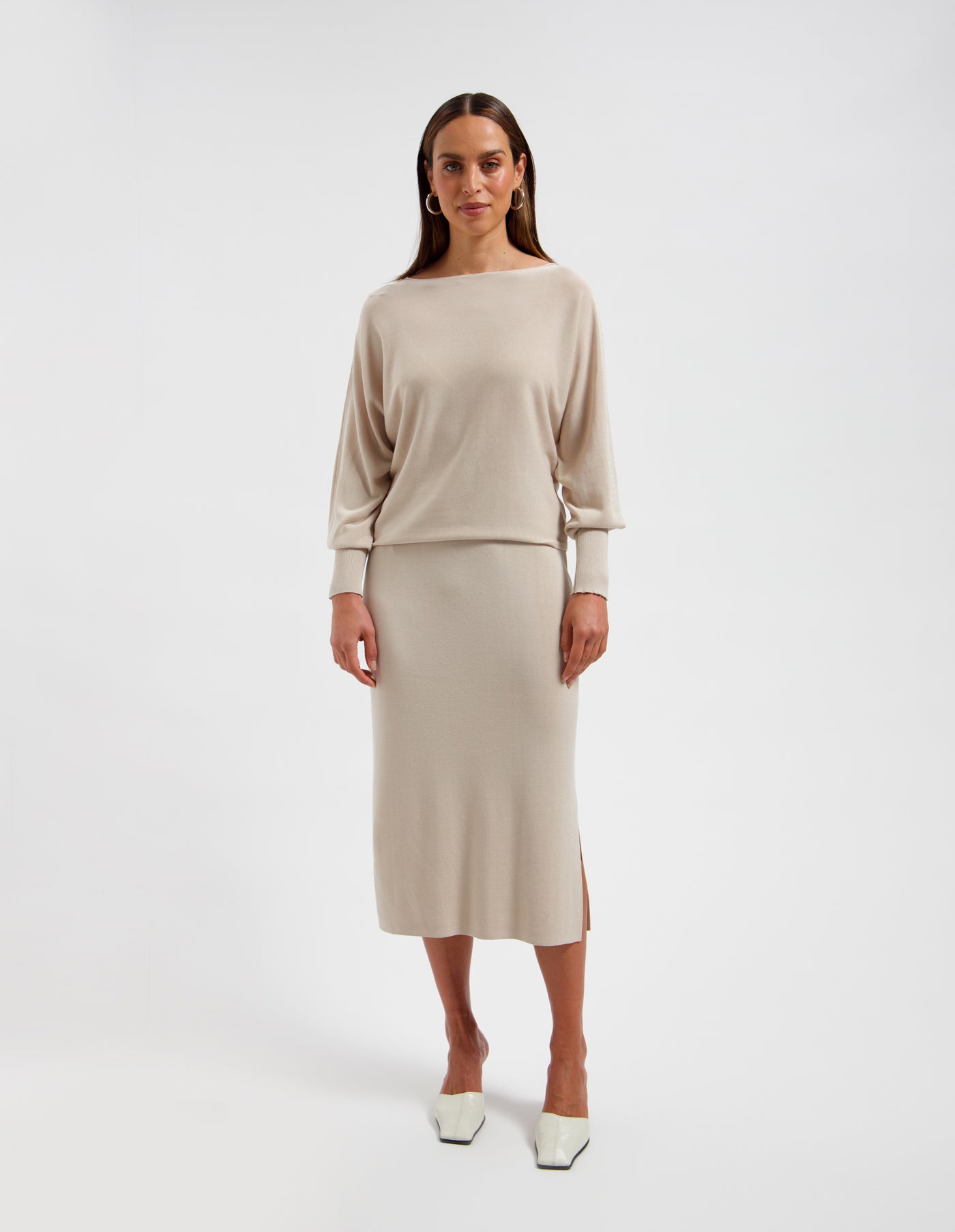 With its relaxed silhouette and graceful neckline, the Nora knit captures modern femininity in a clean, versatile design. The silky-soft fabric adds comfort and movement, making it an easy staple for elevated, all-season styling.