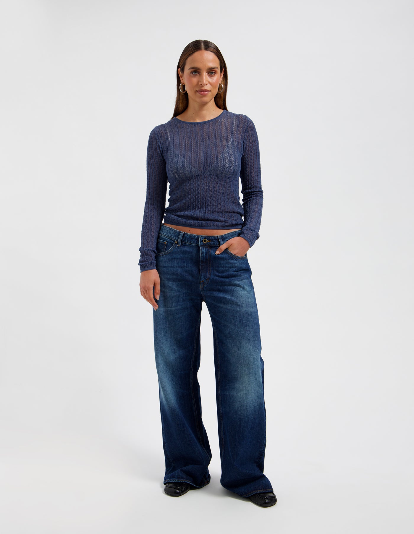 Designed with a refined open-knit structure, the Elinora top blends softness with effortless elegance. Its fitted shape and lightweight feel make it perfect for layering or wearing on its own, adding quiet sophistication to any look.