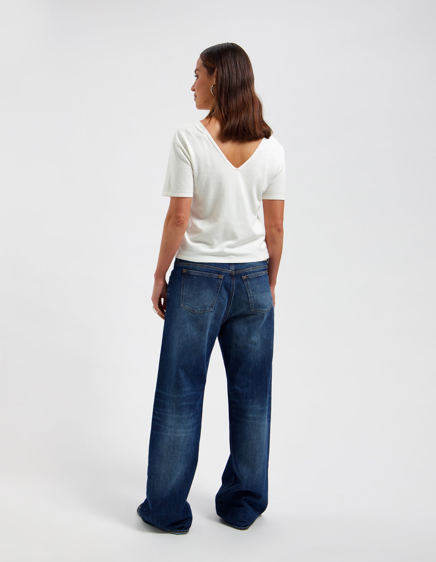 The Melina top is a versatile knit designed with an elegant, reversible V-neck that can be worn front or back. Crafted from a soft, lightweight viscose blend, it offers effortless comfort while bringing a relaxed yet refined touch to everyday styling.