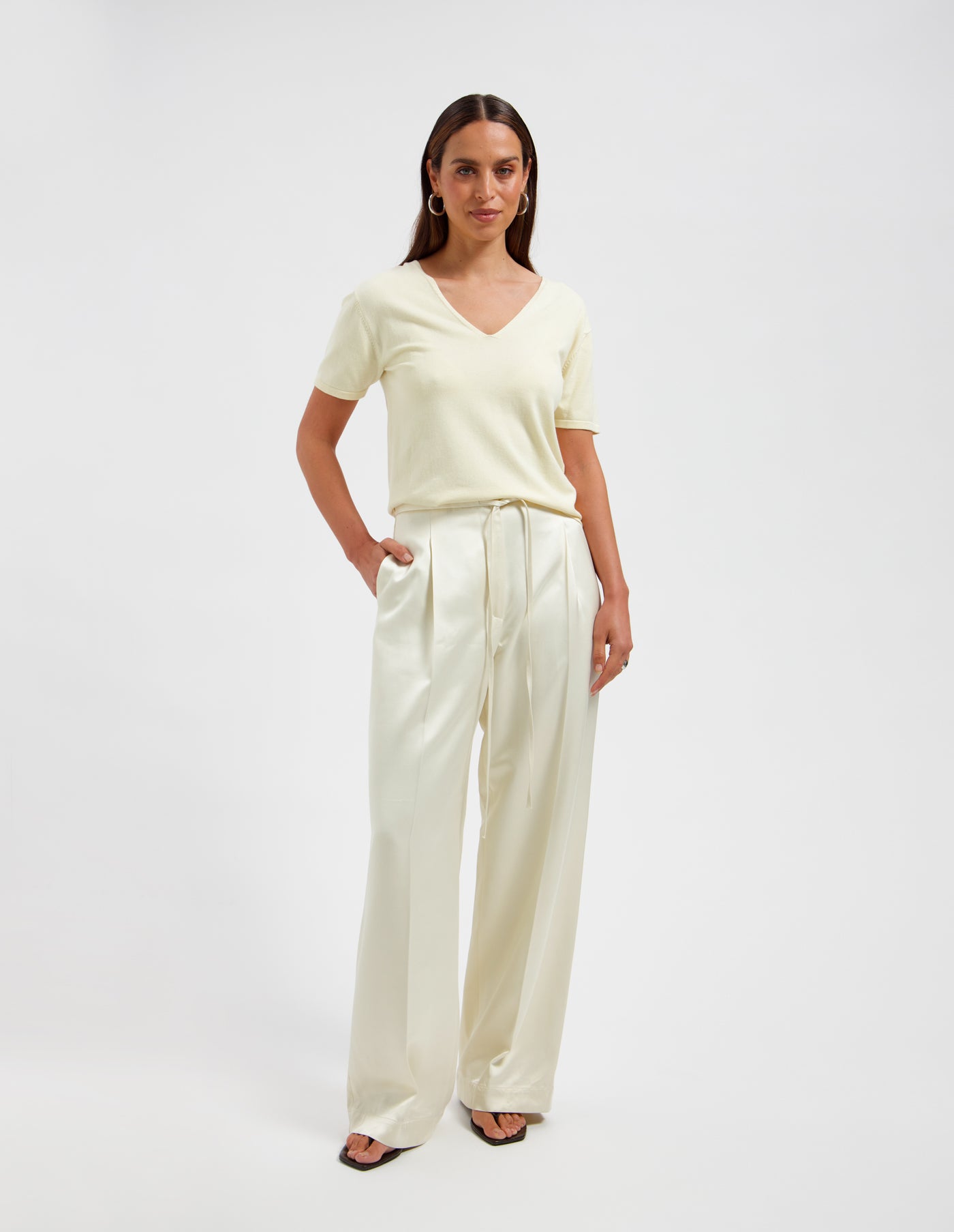 The Melina top is a versatile knit designed with an elegant, reversible V-neck that can be worn front or back. Crafted from a soft, lightweight viscose blend, it offers effortless comfort while bringing a relaxed yet refined touch to everyday styling.